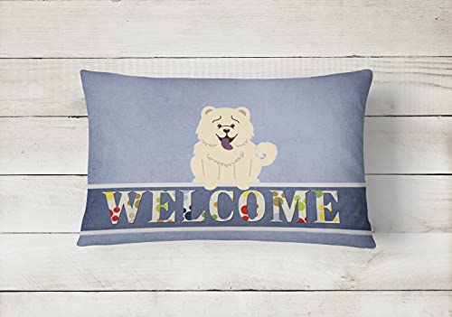 Caroline’s Treasures BB5721PW1216 Chow Chow Wit Welkom Canvas Stof Decoratief Kussen, 12H x16W, Multicolor