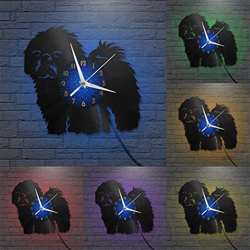 SZG Chow Chow -koira Vinyl Record Clock Wall Art Black olohuoneen makuuhuoneeseen (B) – LEDillä